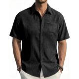 [DESIGN]: Designed with a boxy cut, this men's short sleeve shirt offers a relaxed fit that doesn't cling to your body. Mens Vacation Shirts comes with button closure, chest pocket, matching buttons and curved hem. Beyond simple solid color, a micro-texture discovered only upon closer inspection