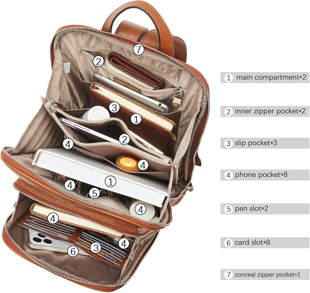 Special design -- When pulling the U-shaped Zippers to both ends, the compartments will not fall out and especially has expandable, spacious rooms easy to reach in and reach out; Practical pockets and slots are smart to organize your books, credit cards, cellphones, iPads, pens, makeups and other personal items; The fashion is suitable for various identities such as college students, backpacker, travelers and designers.