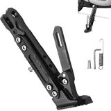 Stable Side Support Stand: The tripod-style base is engineered to create a wide, stable footprint when deployed, aiming to securely hold motorcycles, scooters, and bicycles in an upright position.