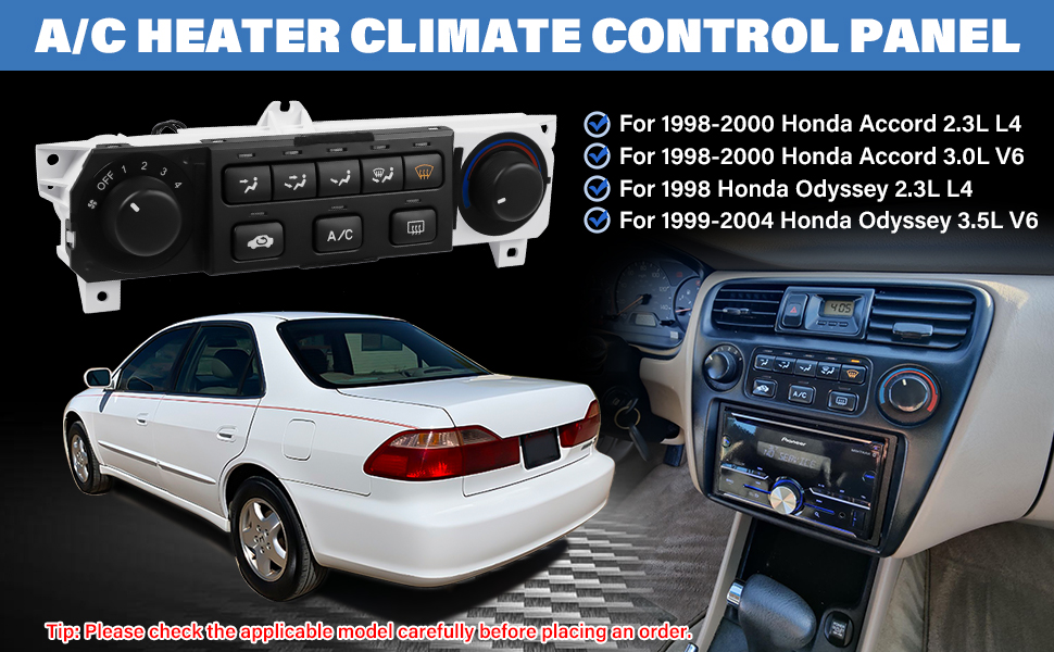 【COMPATIBLE MODELS】This A/C climate control module directly compatible with 1998-2000 Honda Accord 3.0L V6 and 2.3L L4; compatible with 1998 Honda Odyssey 2.3L V4; compatible with 1999-2004 Honda Odyssey 3.5L V6. Please refer to your part number or confirm with your dealer before purchasing to ensure compatibility. You can refer to the adaptation details in the picture and description to view the specific models.