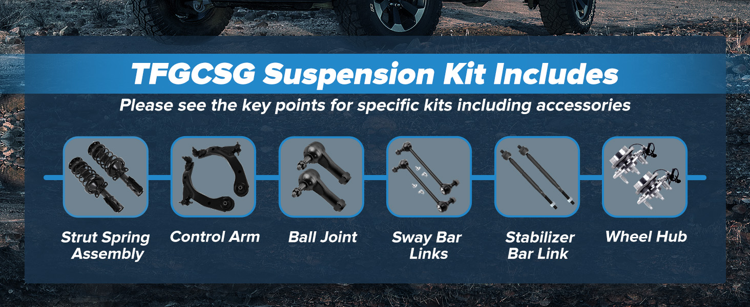 TFGCSG suspension kit advantages: The product is made of high-performance materials, with excellent workmanship, more adaptable than the original oe, simple and quick installation, easy to install, buy the struts kit once, save a lot of time and energy, and make your wallet no longer smaller