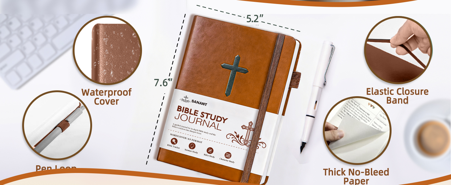 Perfectly Portable: Measuring 5.4 inches x 7.8 inches, our Bible journal strikes the perfect balance between portability and functionality. Its compact design slips easily into any bag or fits comfortably in hand—— equally convenient for Sunday church services or weekday Bible study groups.