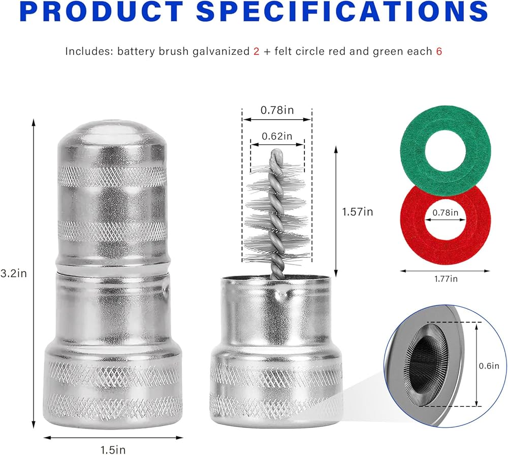 Product Contents: We offer two battery terminal cleaning brushes and twelve felt washers—six red for positive and six green for negative terminals. The quantity of the color-marked washers is sufficient, ensuring long-term use and easy replacement as needed