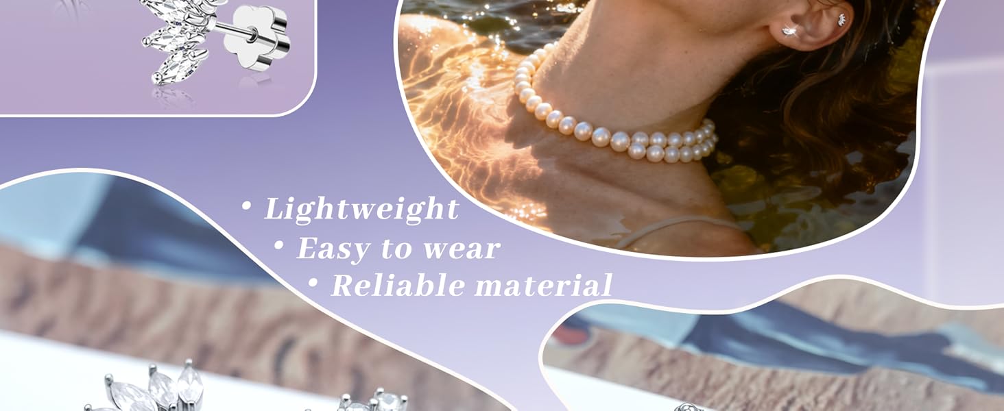 Silver Stud Earring Set for Women: Comfortable hypoallergenic stud earrings are designed with internal thread, which can be firmly fixed in the ear and not easy to fall off. Flat back earrings will not poke the skin or hook the hair, and they will not feel even when sleeping or exercising, so they are suitable for daily wear. Hypoallergenic earring sets are various and fashionable, and are ideal small gifts for yourself or your lover
