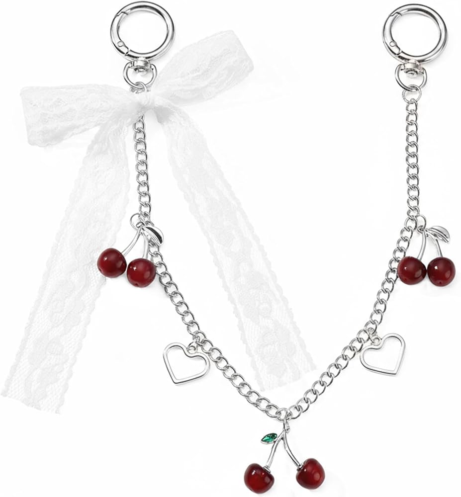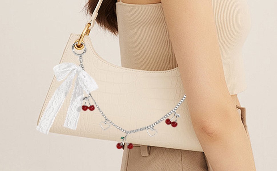 Y2K Inspired Design: Embrace the nostalgic Y2K aesthetic with these charming purse chain charms, featuring cute cherry and bow pendants.