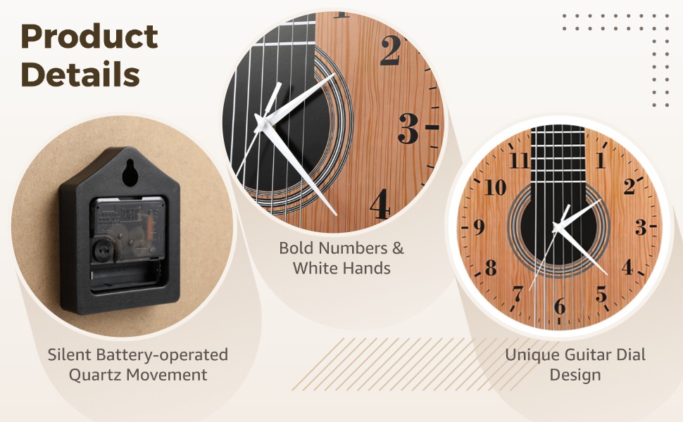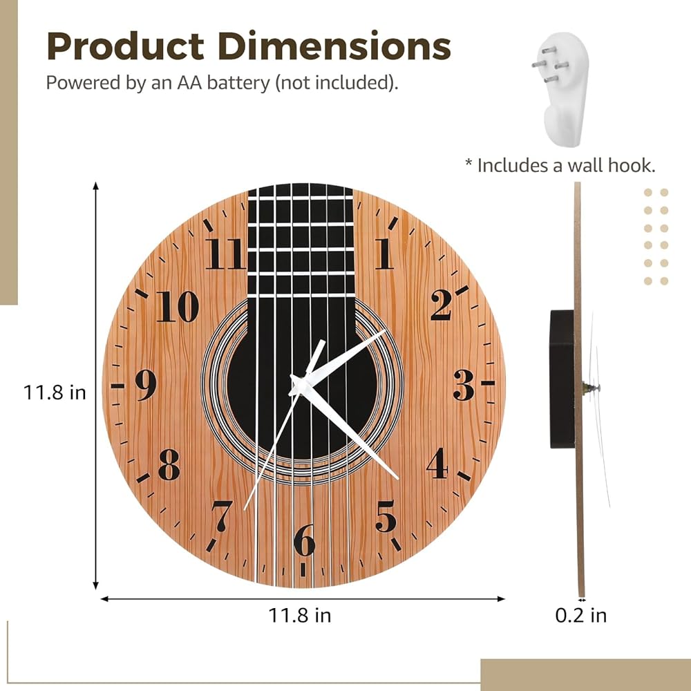 Make Any Wall Feel Musical: Acoustic guitar dial turns a plain wall into a music-themed corner; a fun conversation piece for practice rooms, studios, living rooms, or bar areas without looking cheesy
