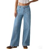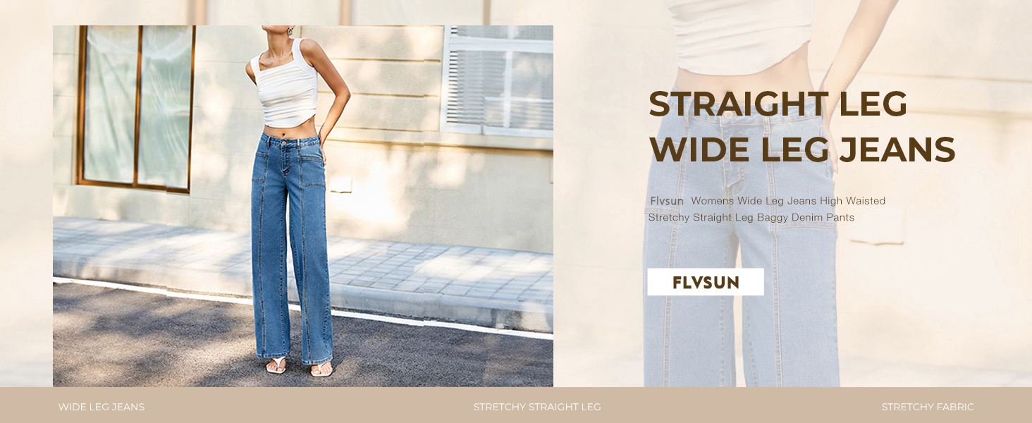 【Features】: The high-waisted wide leg jeans design with 4 front pockets,two in the front and aslo two at back, High waisted stretch jeans for women with zip fly, button closure for your ease of use.