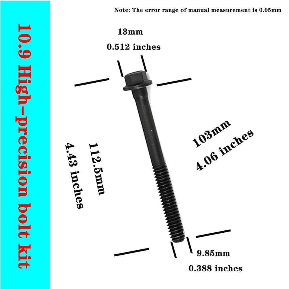 HIGH-STRENGTH CONSTRUCTION: Manufactured from Grade 10.9 high-hardness steel material, ensuring superior tensile strength and durability to withstand extreme engine operating conditions and high torque applications