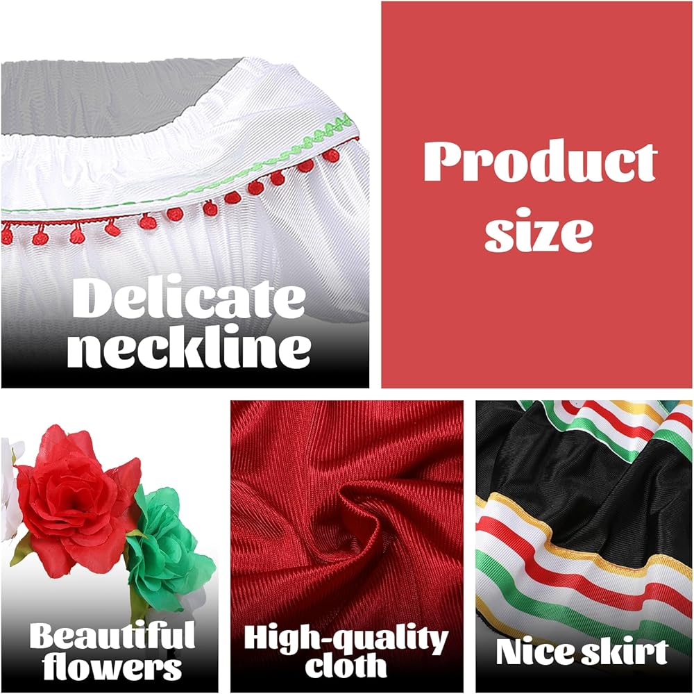 【Size】Mexican skirts is available in 4 sizes. Please refer to our size chart picture to choose the fit size costume and allow for 0.4-1.1 inch size difference due to manural measurement!