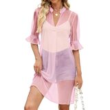 Women's Sheer Swimsuit Cover Up Summer Short Sleeve Half Sleeve Coverup V Neck Bathing Suit Beach Dress