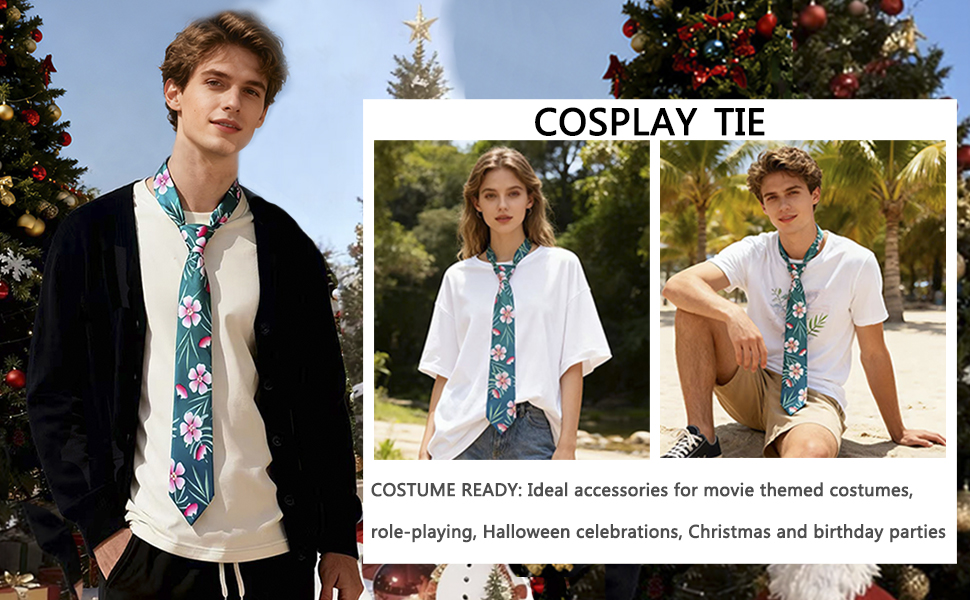 FVCENT Cosplay Tie Men's Printed Teal Green with Pink Flowers Tie Cartoon Movie Costume Props Role Playing Holiday Dress up Christmas Party Accessories