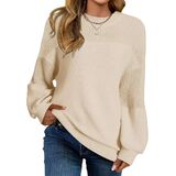 Features: crewneck sweater,knit sweater for women, womens sweaters features with long sleeve and with two different soft knitted fabric patchwork that is unique this year, loose fit pullover sweaters for women, casual style with a chic look