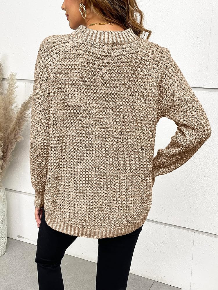 Womens Chunky Long Sweater for Women Fall Winter Spring 2025 Trendy Ladies Dressy Casual Cute Waffle Knit Crewneck Mock Neck Long Sleeve Pullover Sweaters Top Taupe XL