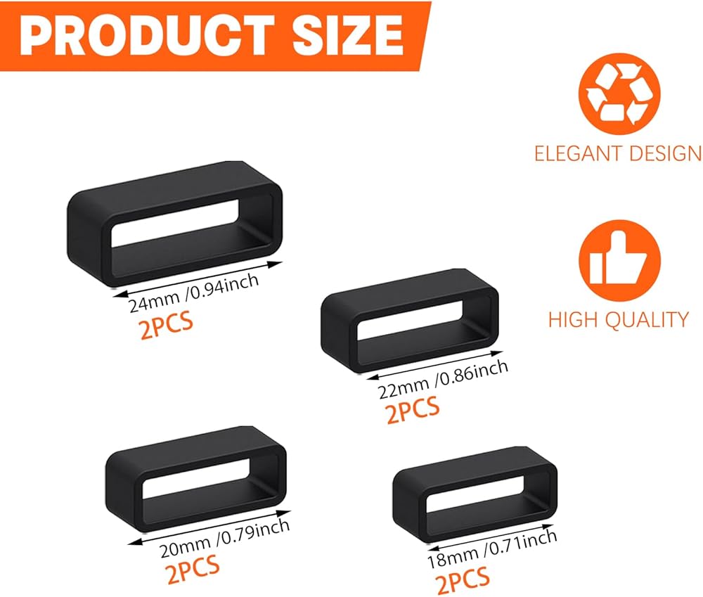 We provide multiple sizes watch strap holder if you aren't sure what size you need. You will receive four different sizes sturdy, black watch band loops with internal dimensions of 18mm/20mm/22mm/24mm. You can choose the band according to your needs, perfect for securing loose straps, DIY repairs, or customizing watch appearance.