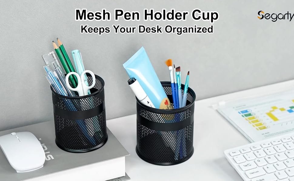 Mesh Pencil Holder for Desk - Segarty marker holder is metal mesh with a reinforced rim and bottom, this pen holder for desk is stable and sturdy and will not fall over when filled with desk accessories. The smooth edges are gentle on hands and protect desktops from scratches, great for offices, classrooms, and home desks.