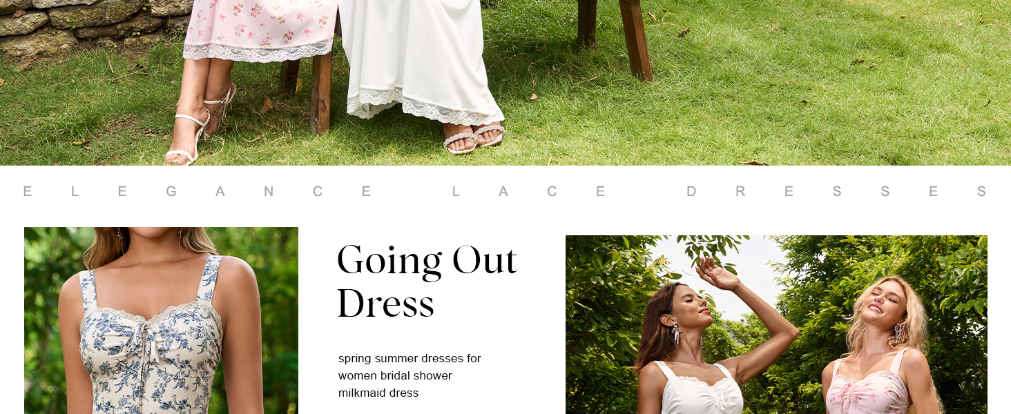 This bridal shower dress features delicate small floral prints that exude a soft, romantic vibe. The sweetheart neckline with a tie-front design adds a playful touch, while the lace trim at the hem elevates the overall —perfect for capturing that dreamy summer aesthetic