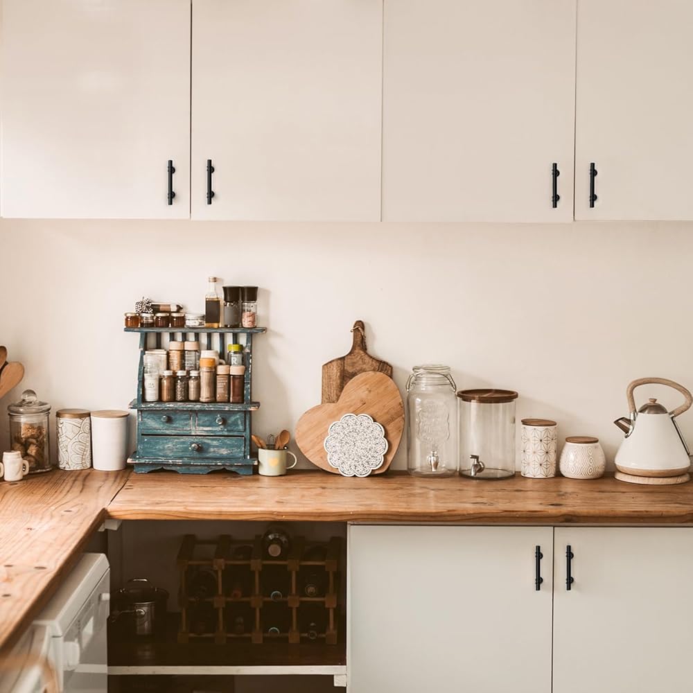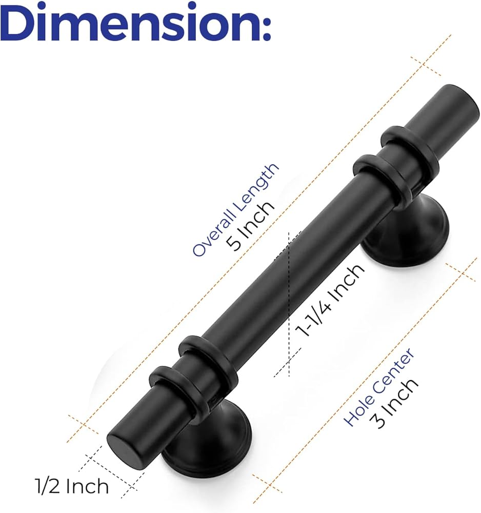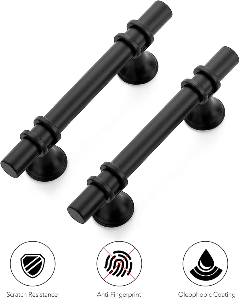 Simple look: The black cabinet handles have a wide appeal across a range of kitchen cabinet doors and drawers The matte black handles have a clean and timeless look that works with farmhouse, vintage, traditional and transitional styles