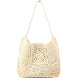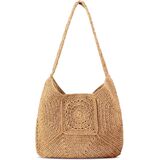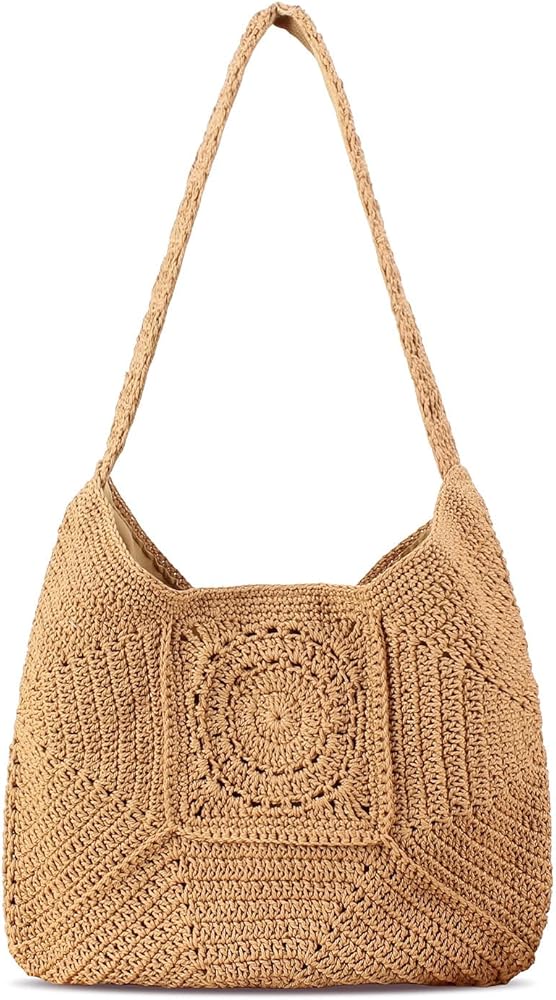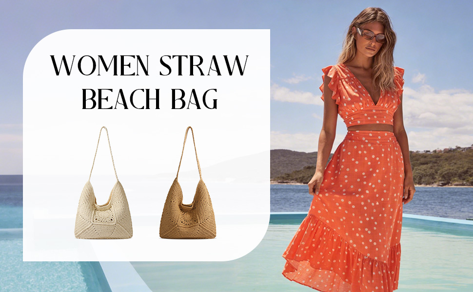 The artisanal crochet openwork pattern across the body adds a touch of bohemian elegance and visual interest, making this tote a stylish statement piece that complements any vacation outfit or casual summer look