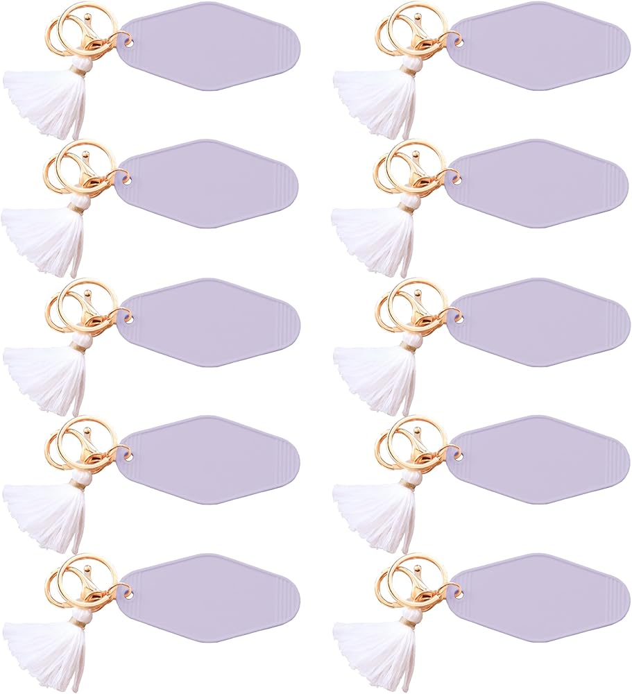 Add a touch of retro charm to your party favors, gifts, or everyday accessories with this set of 10 motel keychains from ModParty. Each keychain features a classic vintage motel-style tag in color of your choice, a white cotton tassel, and shiny gold keyring hardware — perfect for DIY personalization. Use them as bridesmaid favors, birthday bag fillers, wedding welcome gifts, or bachelorette weekend keepsakes. Lightweight, stylish, and easy to customize with vinyl or paint pens.