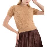 Feature:Fluffy furry top fabric delivers cozy mohair sweater comfort with chic fur shirt look,trendy knit womens knit jumper top,laid-back yet with a touch of refinement