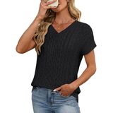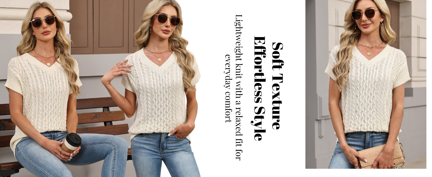 Chic Cable Knit Outfits: The intricate cable knit and crochet pattern, providing rich texture and an elegant look. The classic V-neckline and ribbed trim complete the refined, preppy-chic aesthetic