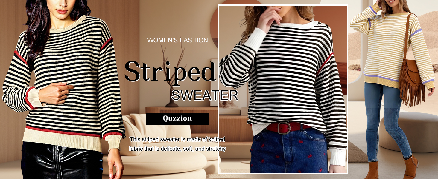 Material:This striped sweater is made of knitted fabric that is delicate, soft, and stretchy; The fabric has excellent breathability and warmth retention, and is light and close to the skin without being heavy, providing a comfortable wearing experience all day long