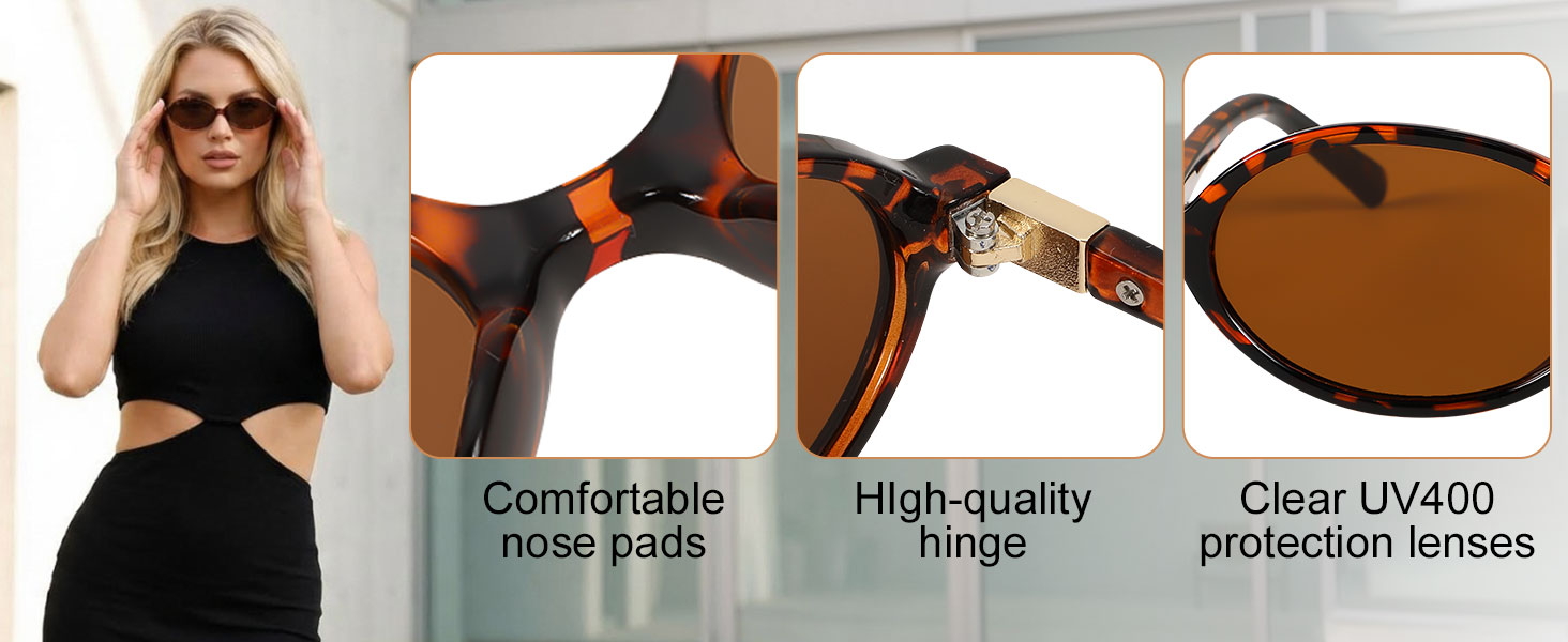Retro Fashion Accessory: With a timeless oval shape and color options, this sunglasses collection is designed for women. It's a go-to accessory for adding a touch of nostalgic style to any wardrobe