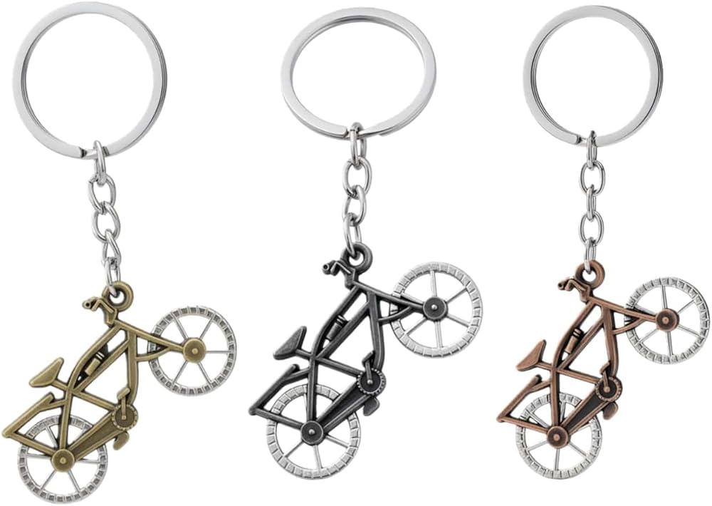 3 Pack Set Bike Keychain for Women Men,Bronze and Silver Bicycle Pendant Charms Keychains Accessories Gifts For Car Key Ring,Backpacks,Bag,Purse Charm