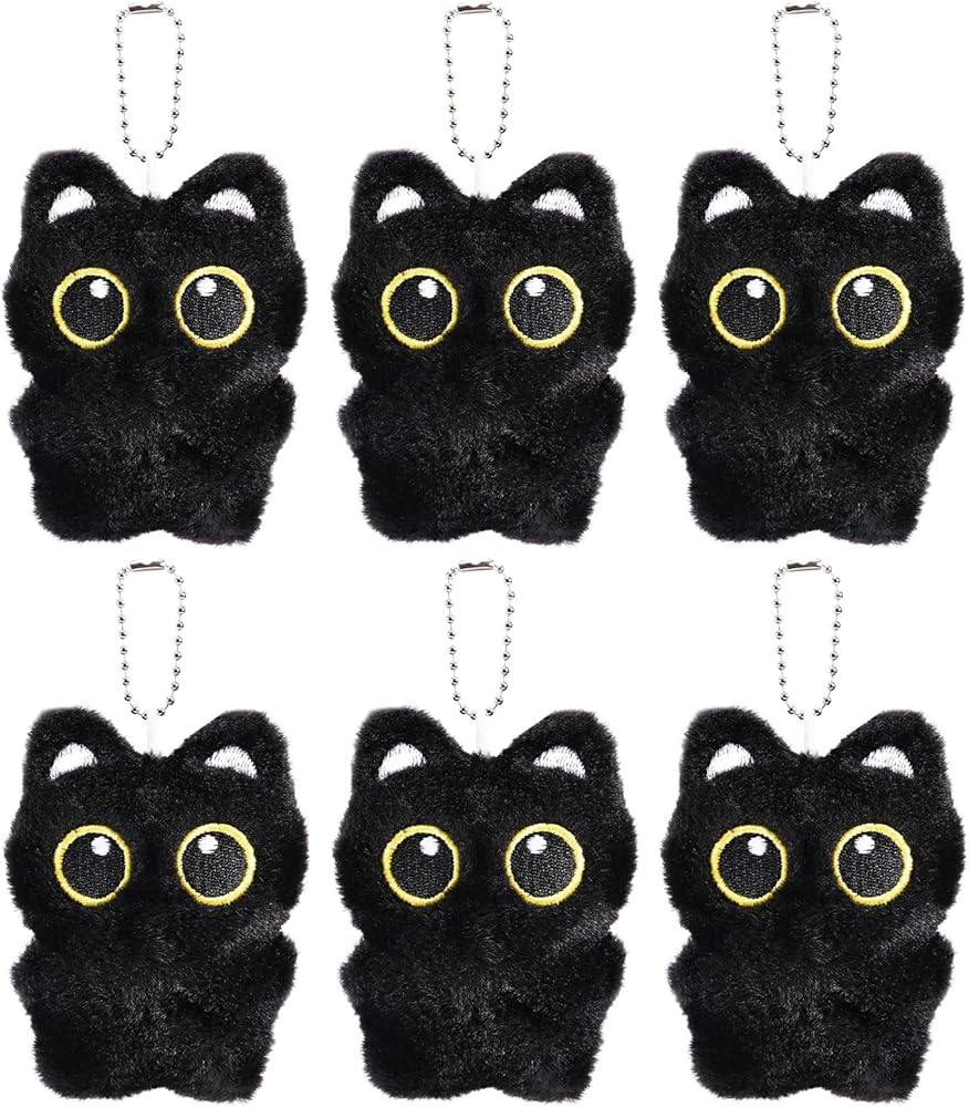 Product List: You will receive 6 pieces of cat plush keychains, designed with realistic black cat shape, cute and fun, can be easily hung on bags, backpacks, handbags, wallets and key chains.