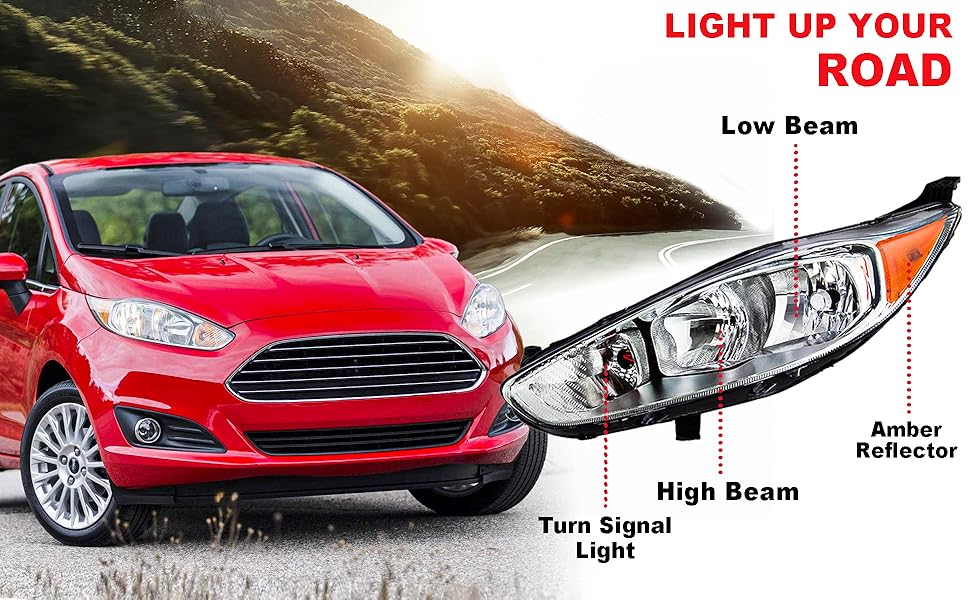 【Perfect Compatibility】: Specifically designed to fit the 2014-2019 Ford Fiesta S SE ST, this headlight is the perfect replacement for your worn out or damaged factory headlight