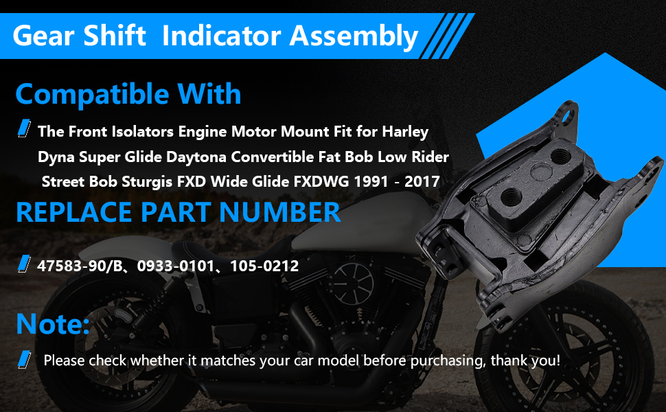 Compatibility:The Front Isolators Engine Motor Mount Fit for Harley Dyna Super Glide Daytona Convertible Fat Bob Low Rider Street Bob Sturgis FXD Wide Glide FXDWG 1991 - 2017
