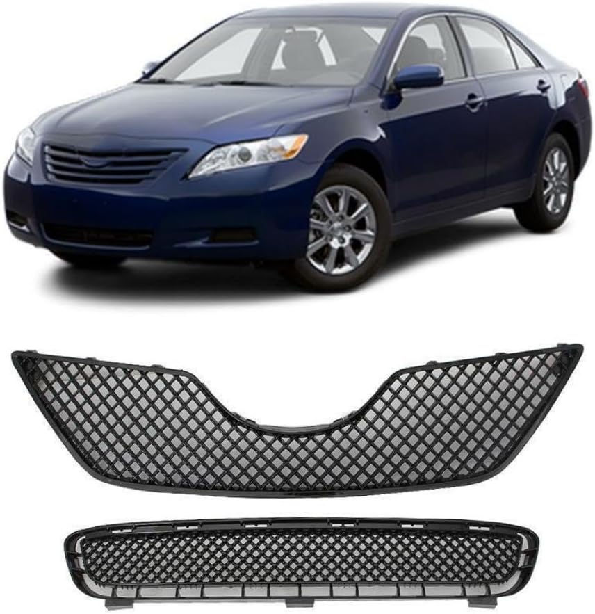 JX RACING Front Upper Lower Grille Compatible with Toyota Camry 2007 2008 2009 Bumper Grill Mesh Style Painted Gloss Black Shell Set 5311206010 TO1036103 5310106180C0 TO1200291
