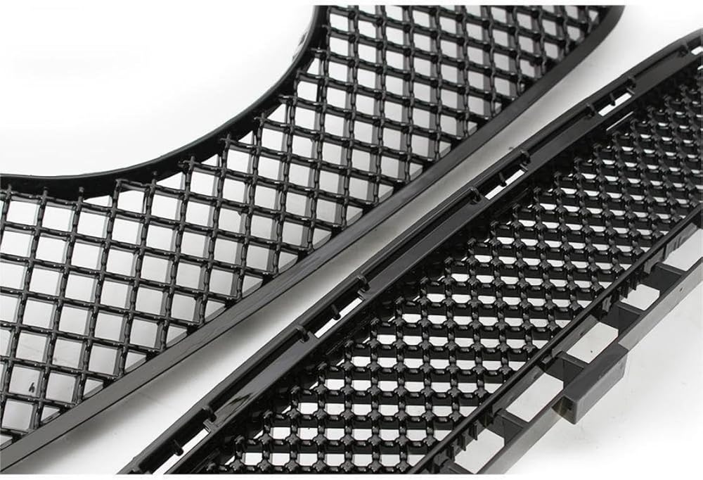 Sleek Gloss Black Mesh Design: Featuring a stylish mesh style and gloss black painted finish, this grille set adds a bold, aggressive, and sporty touch to your vehicle's front end. The smooth glossy surface enhances the vehicle's modern aesthetic, making it stand out on the road while complementing any exterior color.