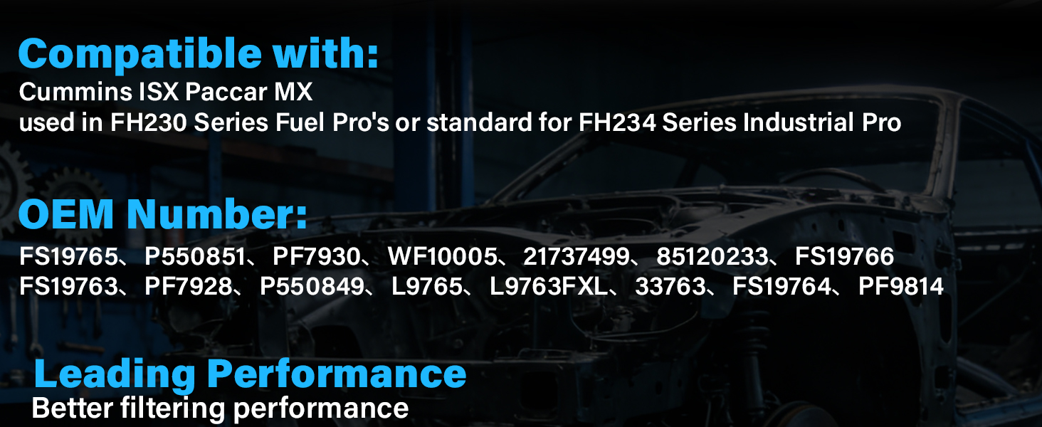 Compatible With — For Cummins ISX Paccar MX, used in FH230 Series Fuel Pro's or standard for FH234 Series Industrial Pro.