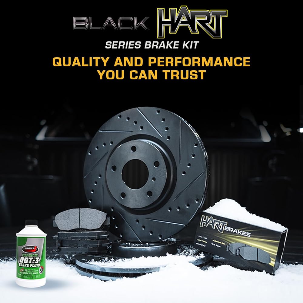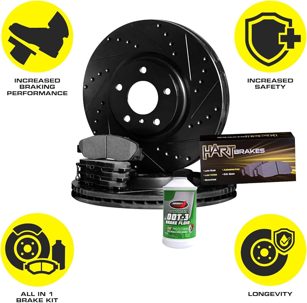 Brake Kit: Includes (4) Hart Brakes Front and Rear Drilled Slotted Brake Rotors with (8) Semi Metallic Brake Pads for improved braking performance