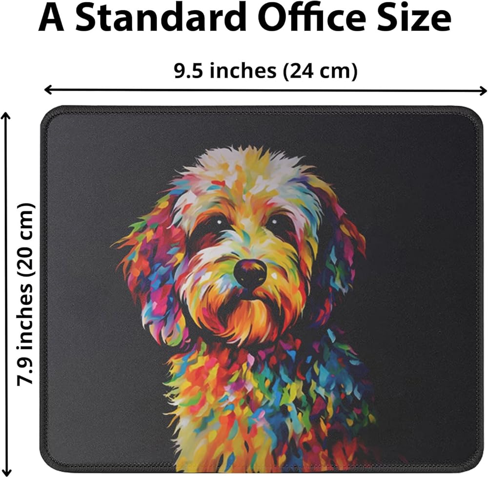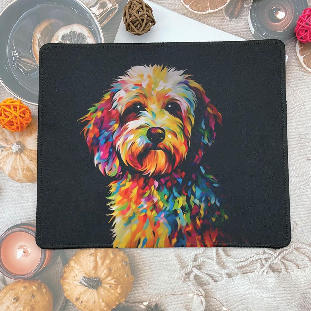 Celebrate the joyful and loving personality of your Doodle with this vibrant pop art mouse pad! Featuring a stunning, rainbow-colored portrait of a fluffy Goldendoodle or Labradoodle, this desk accessory is bursting with life and character. It's perfect for adding a splash of color and a tribute to your favorite furry friend. Enjoy a smooth-gliding surface that offers perfect control for all your daily tasks.