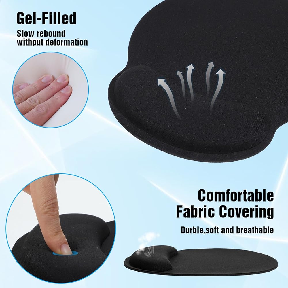 Designed with a contoured ergonomic shape and soft memory foam filling, these mouse pad with wrist support cradle your wrist for optimal comfort and support. They reduce wrist fatigue, soreness, and strain, helping to prevent carpal tunnel syndrome during extended use.