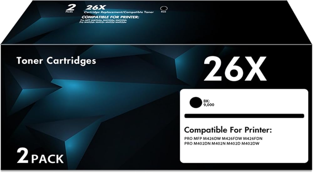 CF226X 26X Toner Cartridges Black (2-Pack) Compatible for 26X 26A CF226A Laser Jet M402n M426fdw, CF226 for Laser Jet pro M402n M426fdw M402dn M402dw M402m Pro MFP M427dw M426dw M426fdn