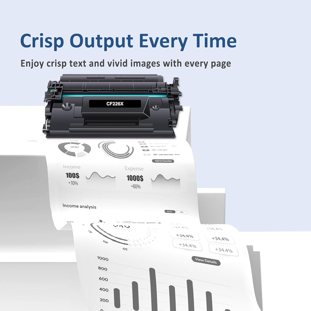- Page Yield: 9,000 pages at 5% coverage (Letter/A4) for CF226X 26X toner cartridge