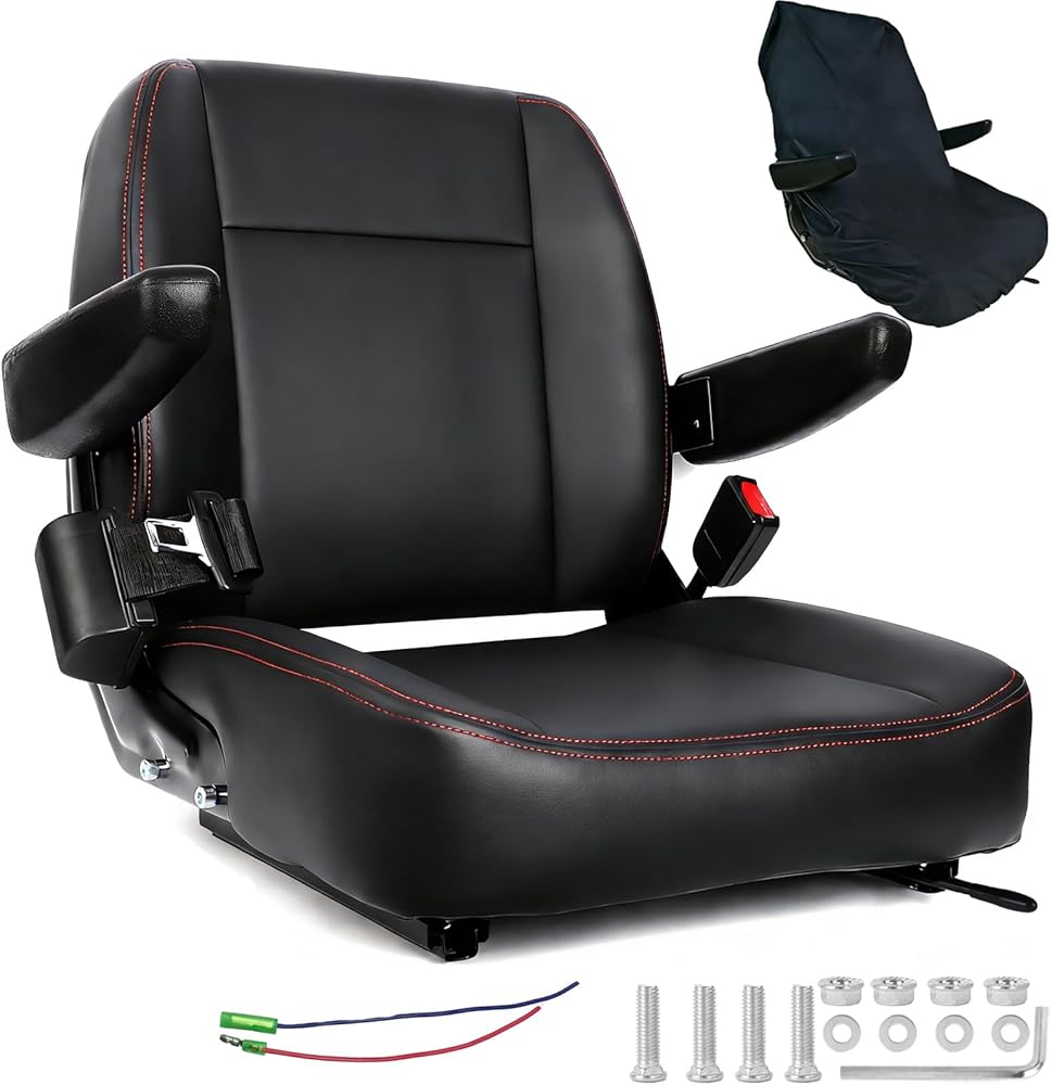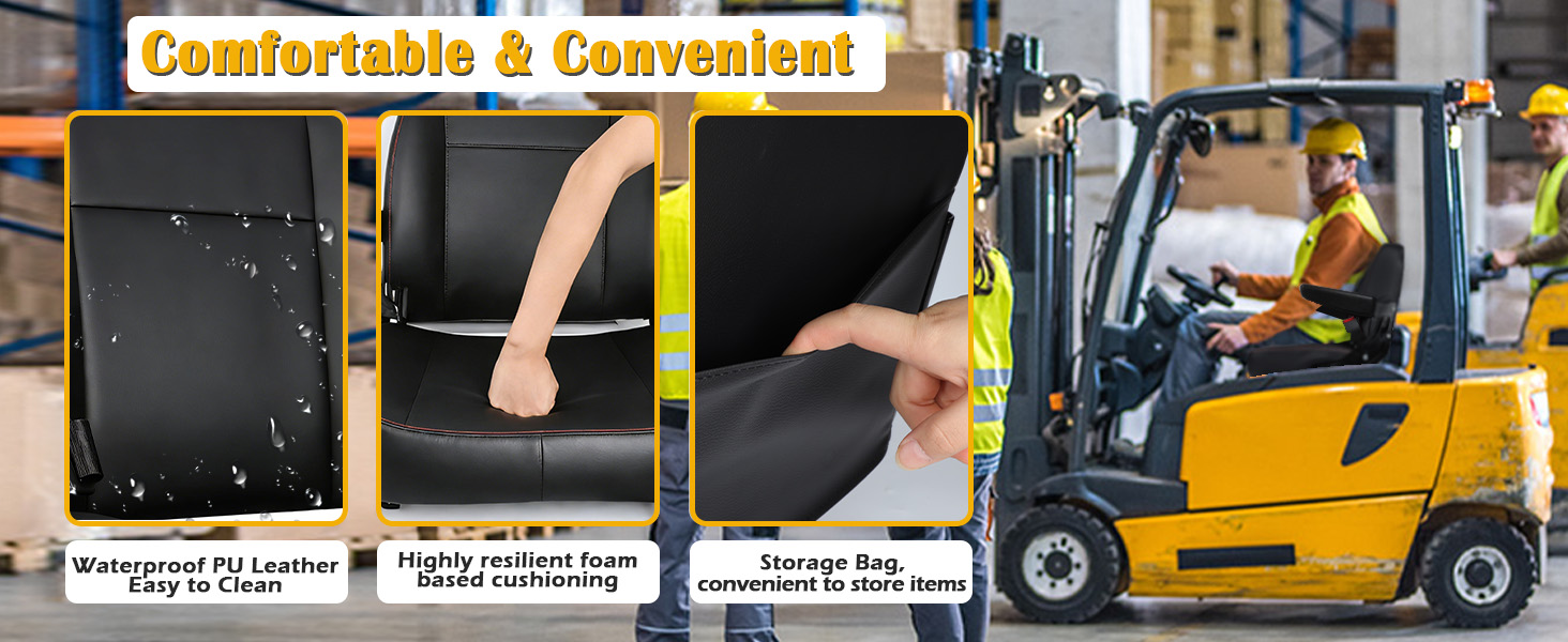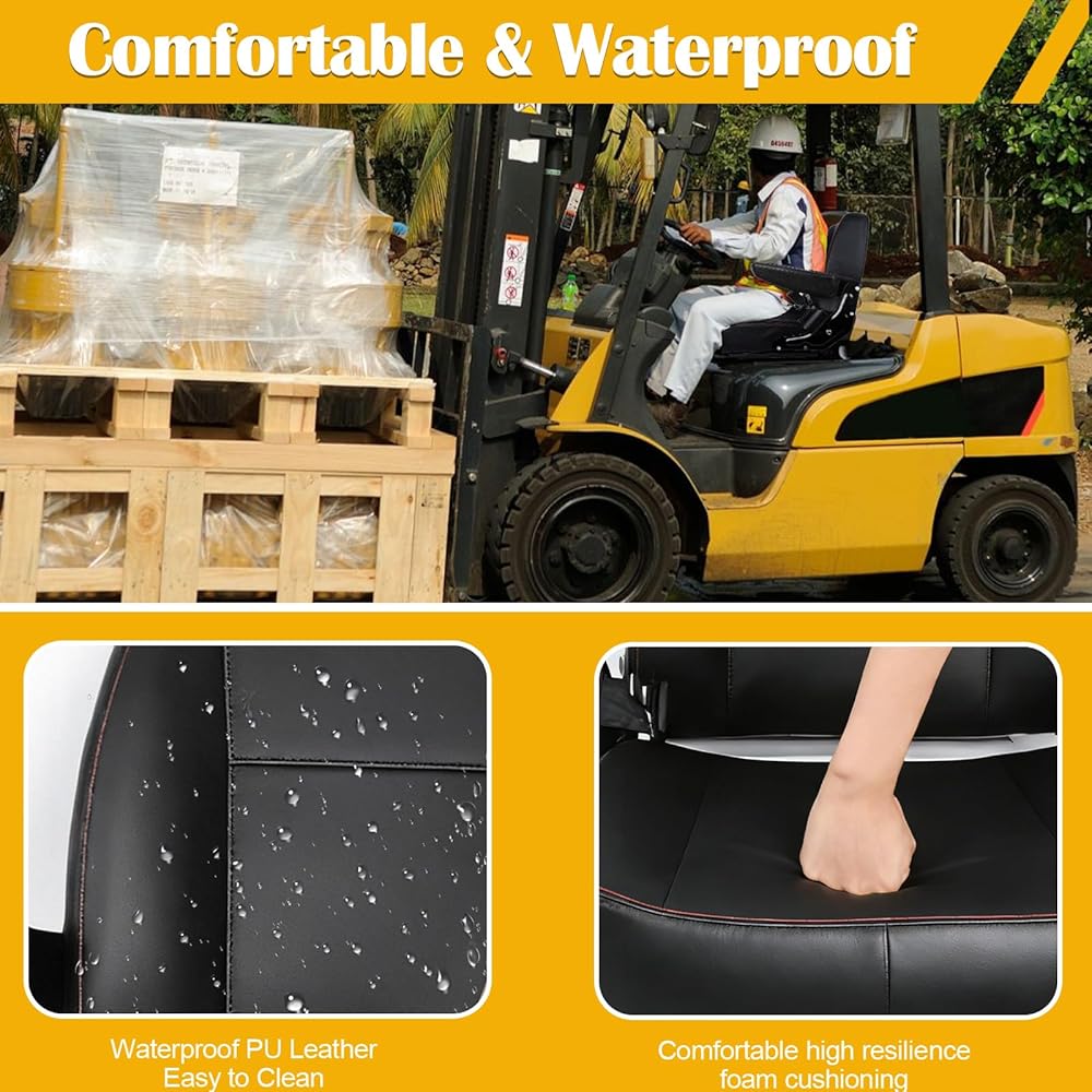 Durable & Waterproof Material: Made of waterproof PU leather, it's easy to clean and resistant to spills. The high - resilience foam cushioning offers long - lasting comfort during extended forklift use. Come with a seat vover to protects your seat from dirt, dust and scratches