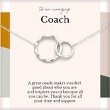 TIMELESS ELEGANCE: Crafted with precious metals, this thank you necklace honors your coach with elegance and style. Choose from sterling silver or 14K gold vermeil. The 18” chain, adjustable to 16”, perfectly complements the double circle pendant, measuring 0.65” in height and 1” in width. It's a meaningful piece of jewelry that expresses your appreciation for their guidance and support, making it one of their most memorable gifts.