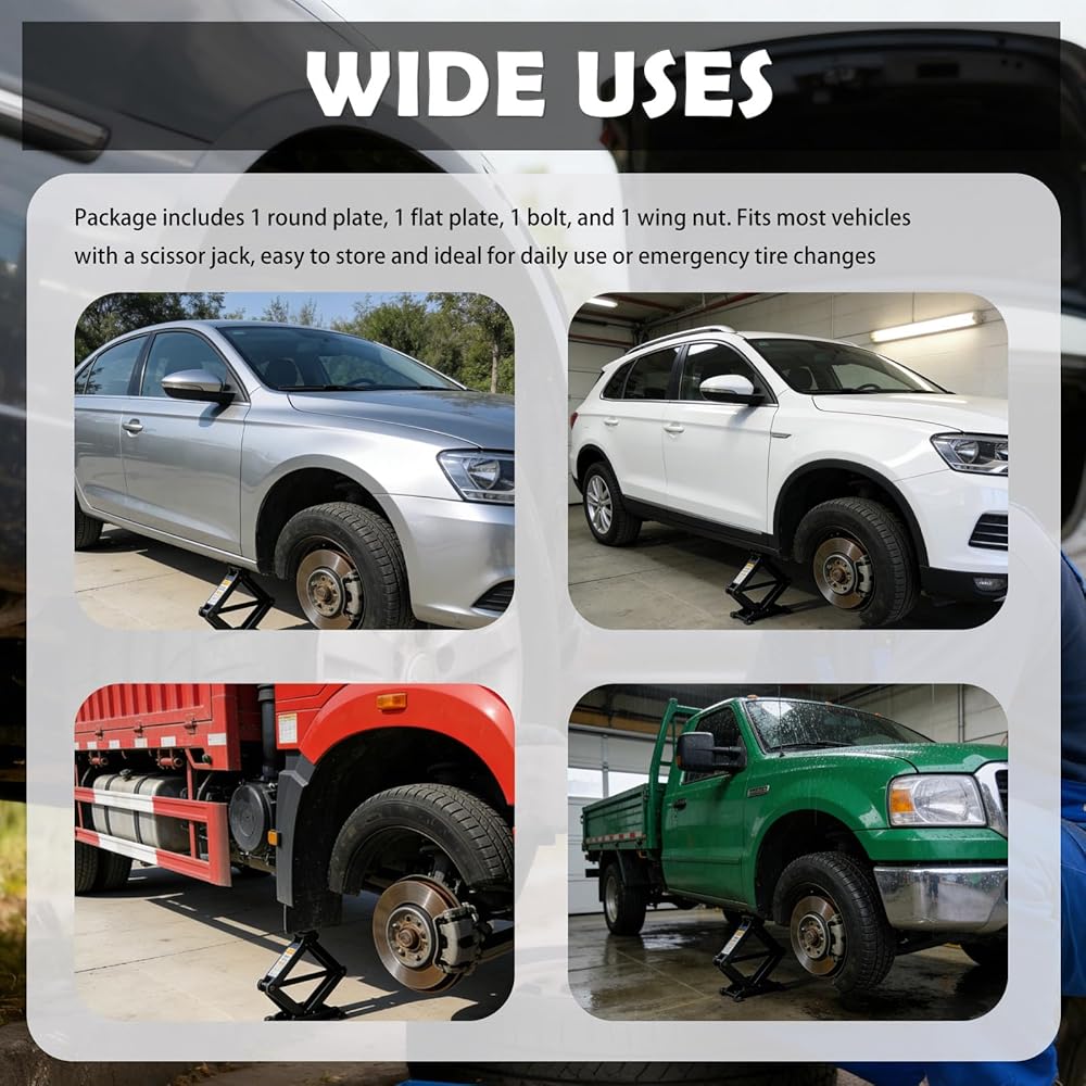 Packaging: Car Jack Ratchet Handle*1, Round Plate*1, Flat Plate*1, Bolt*1, Wing Nut*1