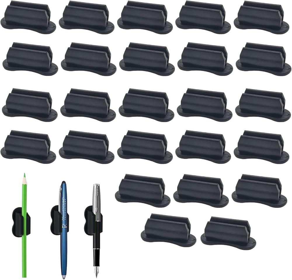 25 Pcs Adhesive Pen Holder, Upgraded Pen Holder for Desk Slicone Holder Marker Holder for Classroom Clipboard Wall Teacher Supplies School Office Desk Accessories(Black)