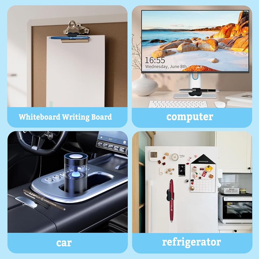 • Desk Organizer: Our pen holder easily attaches to a variety of smooth surfaces, such as desks, refrigerators, whiteboards, folders, walls, and computers. It cleverly utilizes vertical space to organize disorganized pens and tools, instantly tidying your desk and allowing you to find your pens anywhere, improving your work and study efficiency.