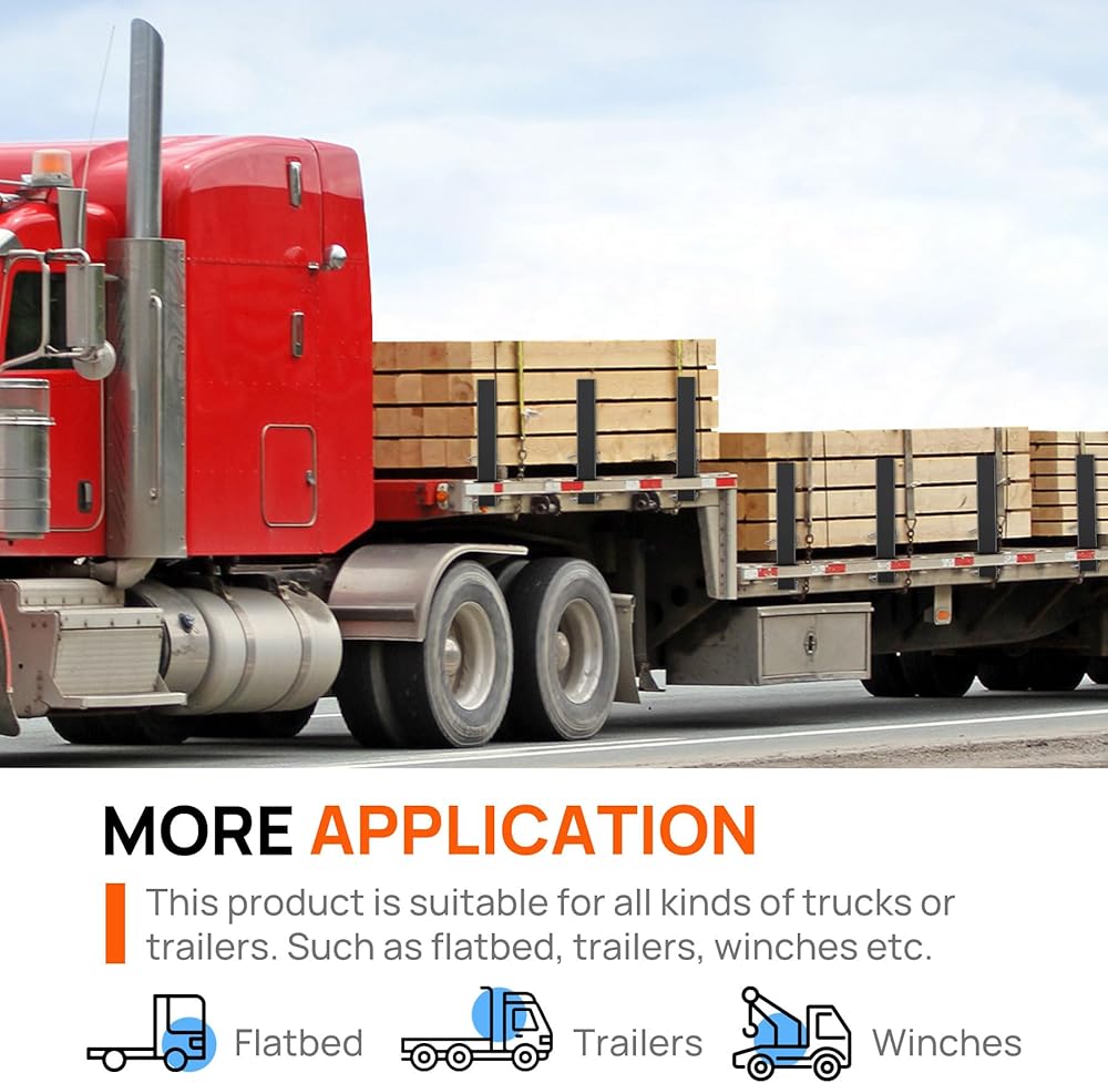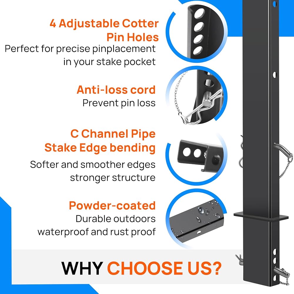 Universal Compatibility Adjustment: The stakes feature an adjustable design that allows them to be easily customized to fit various types of trucks. This unique adaptability ensures seamless installation on different truck models, making your hauling operations more efficient and convenient