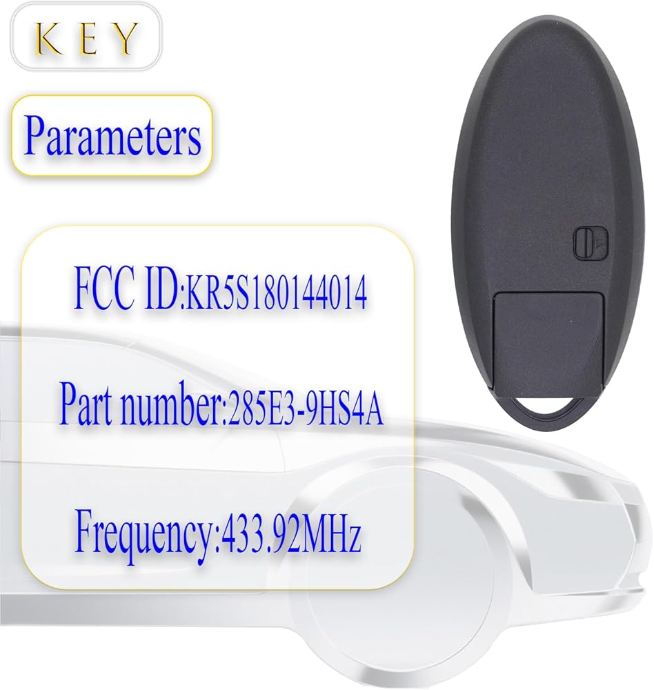 COMPATIBLE VEHICLES:Compatible with FCC ID:KR5S180144014,Part Number:285E3-9HS4A,Frequency:434MHz,This replacement key fob is compatible with NISSAN Altima 2016-2018