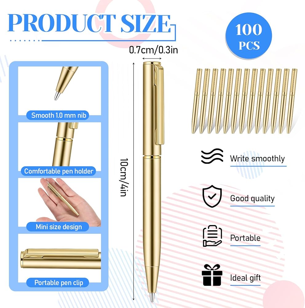 Compact and Portable Design: Each gold ballpoint pen measures 10 cm (3.9 inches), making them mini pens bulk that fit easily into pockets, bags, or notebooks, ideal for on-the-go use.