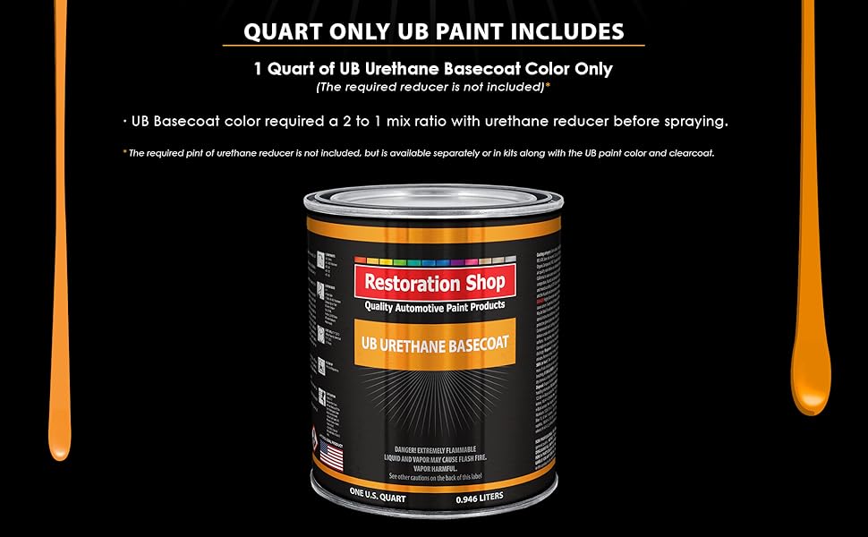 1 Quart Restoration Shop Urethane Basecoat Color Only. No urethane reducer is included with this quart of paint color, but urethane reducer is required to be mixed with the paint color before it can be sprayed or used.