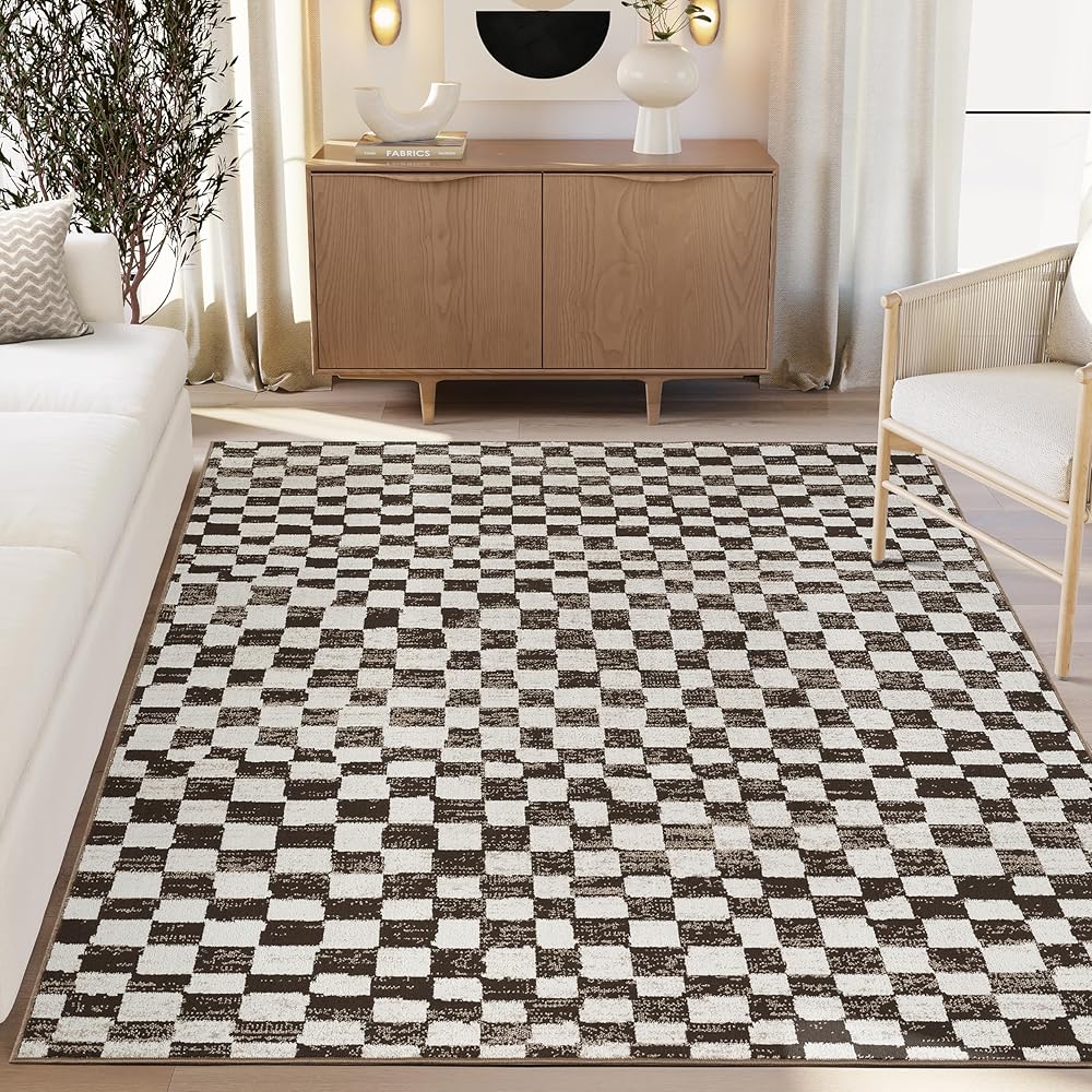 A modern take on a classic check, the Vivienne area rug pairs warm brown and soft ivory in a textured, painterly grid that feels both graphic and relaxed. Subtle tonal variation adds depth without overwhelming the space, making it an easy anchor for living rooms, bedrooms, dining areas, or workspaces. Designed for real life, this rug is machine washable for effortless upkeep without compromising style. Durable, low-maintenance, and refined, it delivers everyday practicality with timeless appeal.