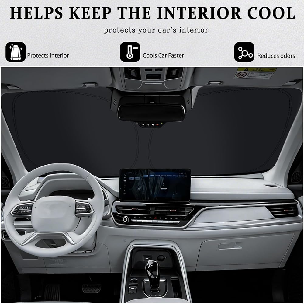 Precision Fitment:The windshield sun shade compatible with Chevrolet/Chevy Silverado 1500 2019-2026. Our sun shade for car windshield can fit the windshield well and block the sun